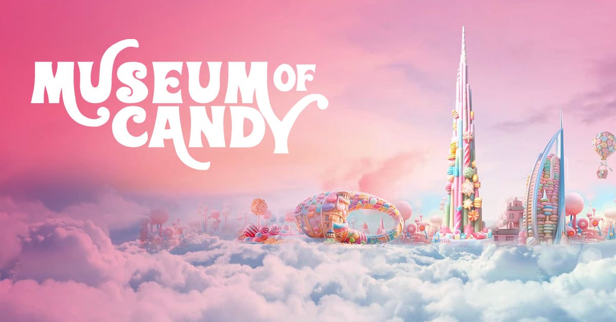 A colorful and playful space filled with candy-themed installations, interactive exhibits, and fun photo opportunities.